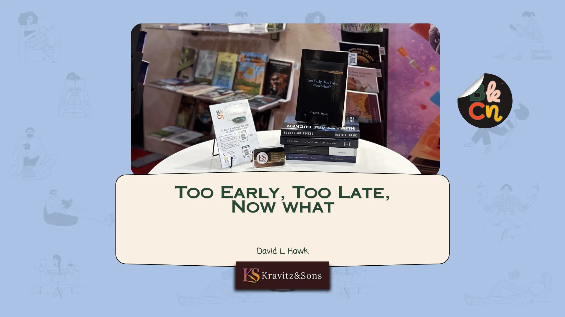 Amid this high-energy and interactive setting, Kravitz and Sons is proud to join BookCon 2026. We’re excited to exhibit Too Early, Too Late, Now What by David L. Hawk, a work rooted in academic research that examines social systems, environmental deterioration, and the complexity of human decision-making. It reflects a body of work developed through systems science, focusing on how structured thinking can be used to understand and address real-world problems.
