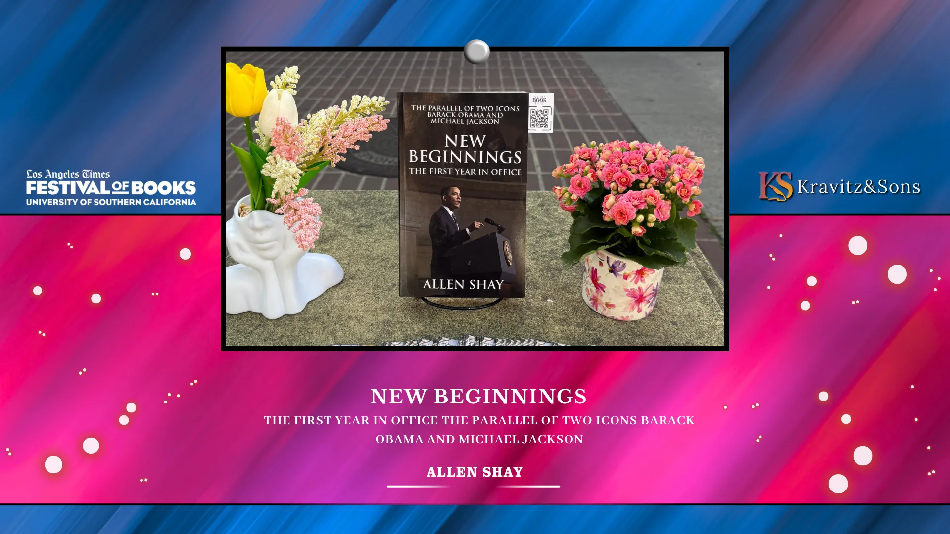 Amid this dynamic and welcoming environment, Kravitz and Sons is proud to be part of the Los Angeles Times Festival of Books 2026. We’re excited to exhibit New Beginnings: The First Year in Office the Parallel of Two Icons Barack Obama and Michael Jackson by Allen Shay, a thought-provoking exploration that connects two powerful figures through the lens of purpose, timing, and impact. It brings together history and personal reflection, showing how two different lives can still share patterns that inspire generations.